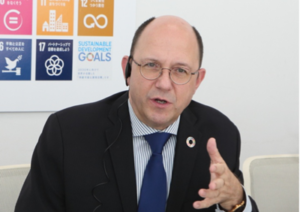 会议开始后,盖斯首先向与会人员表达了问候,他说“博报堂DY集团通过协助制作可持续发展目标官方日语版图标(※1),参与到‘创新世界’的宏大理想中来是十分难能可贵的”。