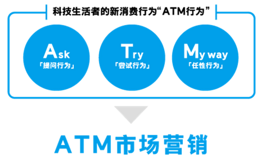 我们将上述三个新的消费行为分别取其英文首字母概括为“ATM行为”,相应地,将应对科技生活者变化的市场营销视点命名为“ATM市场营销”。“ATM市场营销”能够对应拥有了“数自力”的生活者的“无法标准化的个别需求”,指向的是基于“ATM行为”理解的、集科技与“自力”于一身的服务体系,也是一个有助于今后理解和把握中国科技生活者的市场营销新视点。