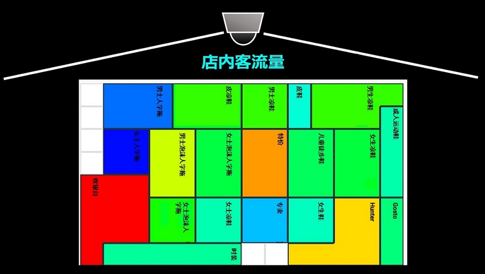 在越南某服装品牌的店铺布局和购物追踪系统中分析了购物客的回游特性实例。红色表示在该区域滞留的购物客较多,蓝色表示在区域滞留的购物客较少。虽然特意去店里逛,但是什么都没买就回去的人其实有很多,可以考虑其潜在购买力很高。但是,迄今为止,不买而归的顾客的数据很难拿到,这已成为一个黑洞。通过对购物追踪系统数据的分析,对那些抱着期待而来,但遗憾没有购物的人=“Mr./MS.X”的行动模式达到可视化。通过针对Mr./MS.X为目标的营销手法“潜在用户营销(Mr.X marketing)”**,研究了店铺战略。