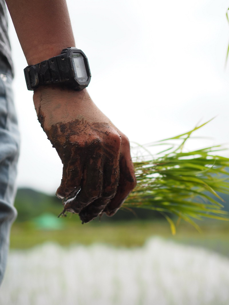 我本人也是最初做开垦作业时,有一种野性的血液在沸腾的感觉(笑)。不曾拿过铁锹的手,感到分泌肾上腺素;插秧和割稻子时候,虽是初次体验,但让人觉得以前也曾从事过。我想这就是稻米文化圈生人的根、DNA(基因)所致吧。在我自己的内心深处有很多新发现。