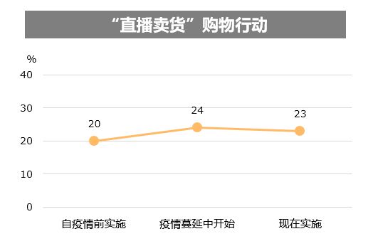 根据生活综研(上海)的调查,在“直播卖货”上的商品购买行为和疫情之前相比,在疫情期间和疫情结束后相对变得更加活跃。