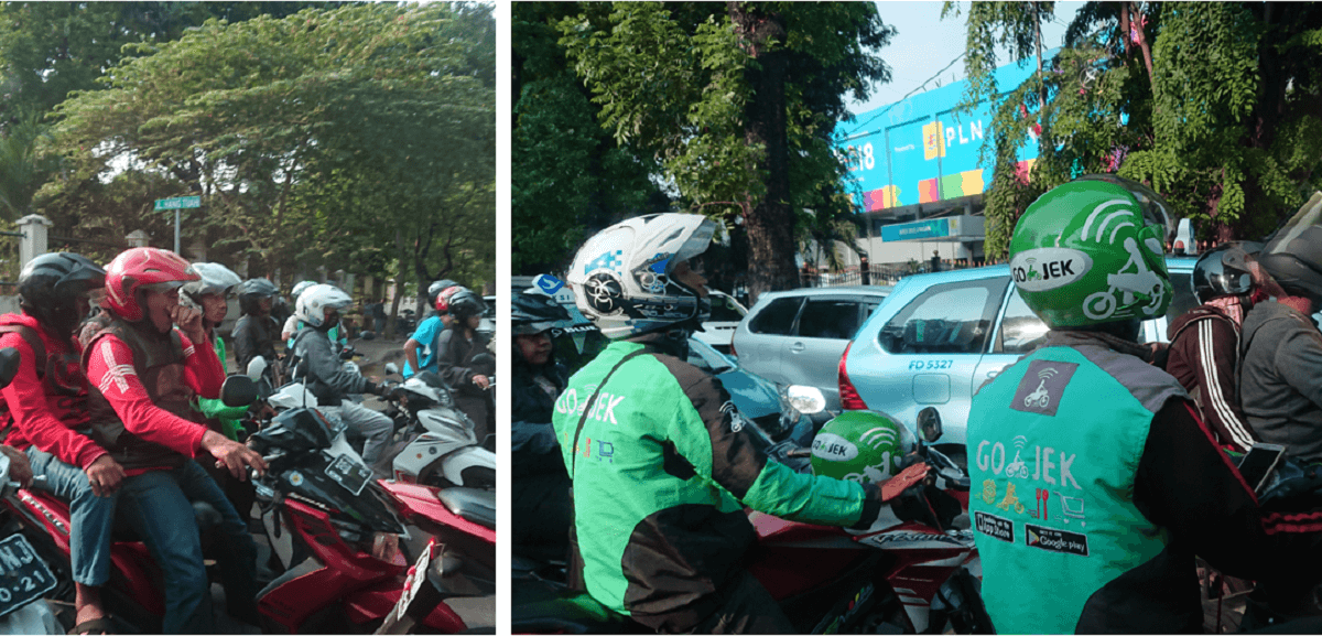 奔波中的GOJEK(右图)