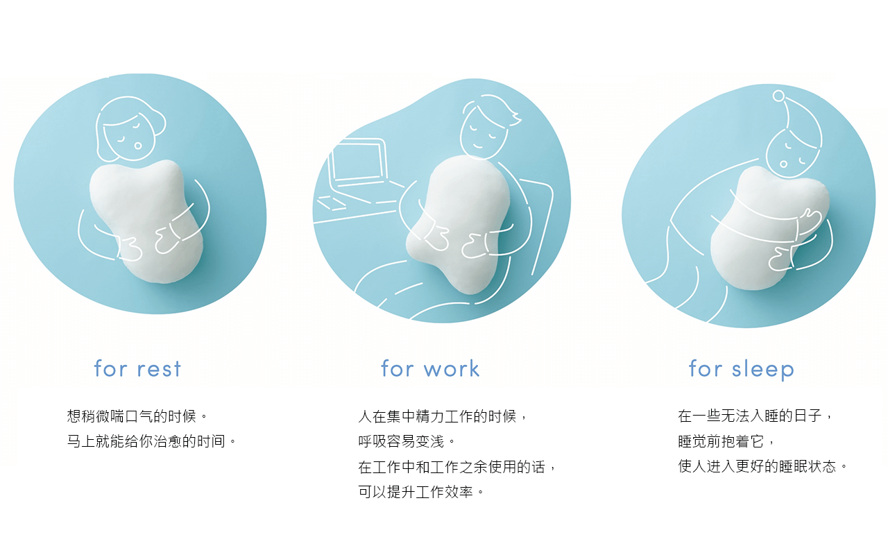 忙碌的现代人在日常生活中身心压力都很大。我们想鼓励现代人去更加自主地休息,想到了开发出可调节呼吸、使人们自发地进行深呼吸的产品。