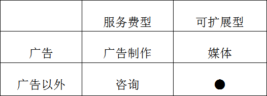 小野:对对。monom开发小组想做的是利用广告公司创意,来拓宽广告公司的商机。就像下表所示这样,右下角的“广告以外/可扩展型”这块,就是我们在挑战的以产品为起点的项目开发。