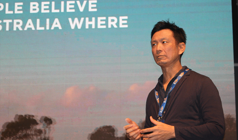左起:专题讨论会开始后,HILL ASEAN的帆刈吾郎走上舞台,提出了问题:“作为历史最悠久的广告公司之一,博报堂如何继续发挥出自己的优势呢?”