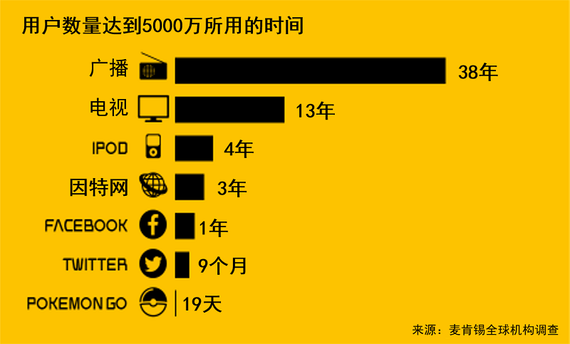 物联网设备的数量预计将于2021年大幅超过手机的数量。消费者接受新技术的速度每年也在加快,他们对技术的响应速度也超过了企业。如果我们分析各类设备获得5000万用户所花的时间,我们会发现,电视用了13年,Facebook用了1年,而Pokemon Go仅用了19天。因此,虽然物联网技术才刚刚萌芽,但也有可能迅猛发展。