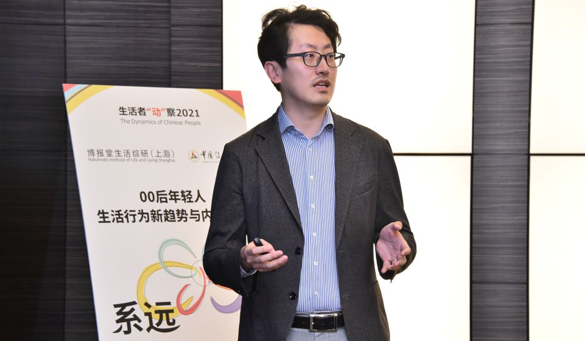 博报堂上海代表处大熊健二首席代表(照片左一)、博报堂生活综研(上海)研究员及演讲嘉宾中国日新月异的数字化科技的进步深刻影响着当代00后。作为即将引领未来市场和潮流趋势的一代人,00后正被企业视为最重要的市场客群之一。基于此背景,生活综研(上海)聚焦于00后的行为和意识动向,探求年轻人欲求的变化,并发布相关调研成果。