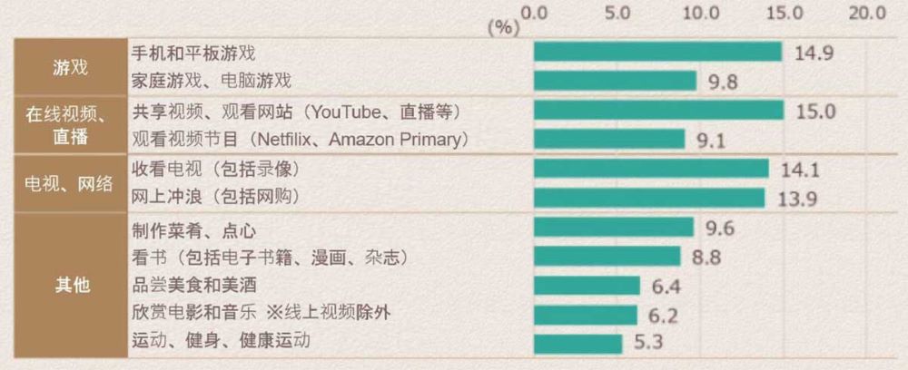 为了弄明白大家是如何度过居家时间的,我特意去查看了一些因居家时间变长而开始利用或增加的项目的相关调研结果。