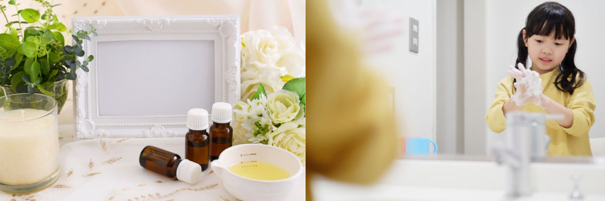 在我收集周边有关芳香的趣事时,得知有一个朋友利用芳香效果让孩子养成了洗手的习惯。作为防止新冠感染的预防措施,如今洗手的重要性越来越高。有小朋友的家庭,为了让他们养成洗手的习惯颇费父母的心思。为此那个朋友咬牙把一直在用的洗手液换成了稍贵的、但会留下淡淡香味的洗手液(500ml约4,000~5,000日元),孩子终于肯认真洗手了。洗手本来是为了清除眼睛看不到的病菌的。通过把目的变成“闻着喜欢的香味”,从而促进了孩子的意识转变和习惯化。