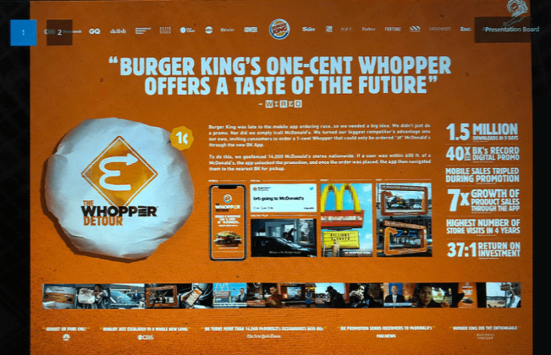 今年,最受欢迎的戛纳品牌之一当属汉堡王(Burger King)。汉堡王可以说是戛纳的常客品牌,不过,今年在评奖上,“为皇堡绕路”营销活动在Titanium·Direct·Mobile的类别获得了以大奖为首的许多奖项。