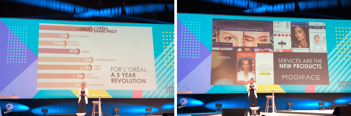 在研讨会上出现的关键词中我们十分关注 “Service are the New Products(服务是新产品)”。在研讨会上谈到关于去年收购的拥有面部和皮肤的图像分析技术专利的Modiface公司的实例,该公司通过应用软件提供的皮肤诊断和发型模拟服务,强化了顾客体验和个人数据的灵活利用。
