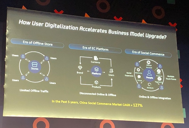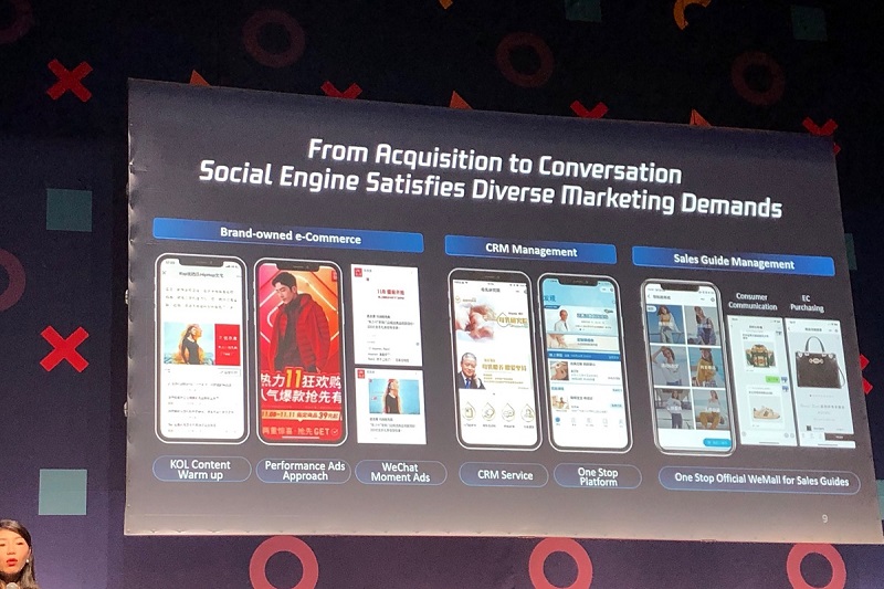 在这次戛纳创意节上,中国的腾讯(Tencent)为了扩大其影响力,特别在研讨会上提供多个广告案例,提高了存在感。在戛纳的第一个研讨会上,介绍的主题是通过在中国拥有压倒性市场占有率的社交平台微信所提供的服务实现的新商业模式。随着电商市场的增长,在无现金支付和新零售等购物的数字化上,中国走在世界先端,并提出线上和线下统一的“社交电商时代”即将到来。