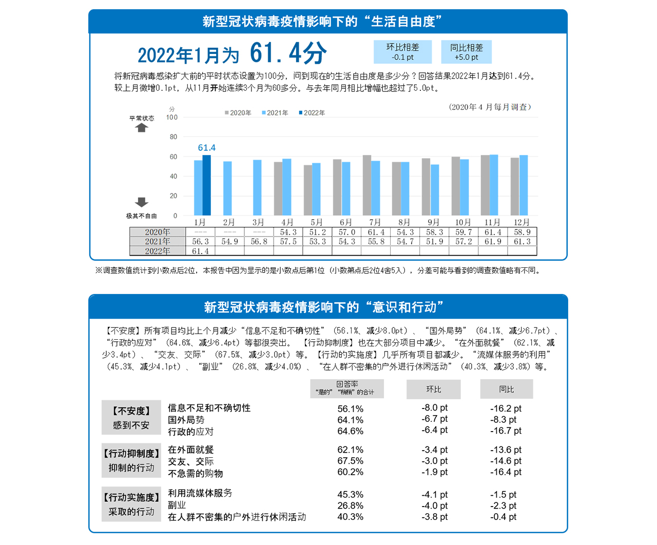 1月的“生活自由度”为61.4分,维持在较高水平。