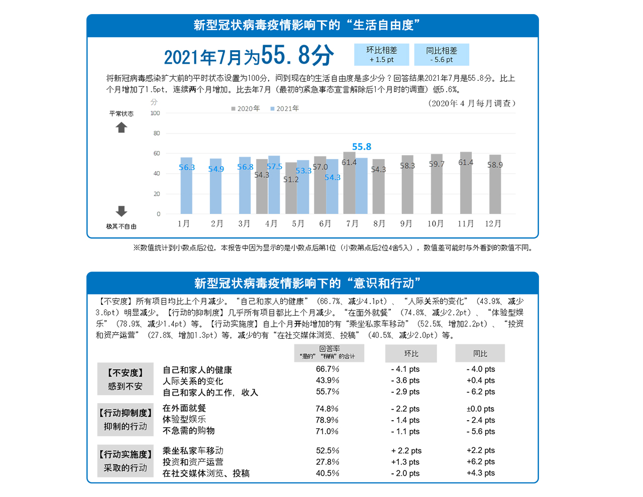 7月的“生活自由度”为55.8分,连续2个月呈增加趋势