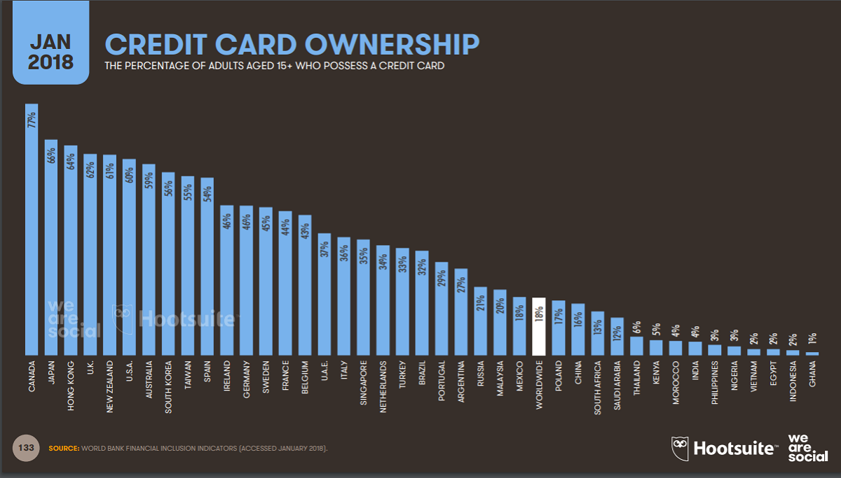 泰国的信用卡持有率明显比日本低。根据“we are social 2018”的调查,日本的持有率是66%,而泰国只有6%(图1)。信用卡用户在某种程度上来说都属于特定的阶层,今后随着网上银行、和绑定银行账户的手机支付服务的发展,使用这些服务的人群将会更加广泛,因此关于钱和安全的意识可能也会相应的发生改变。