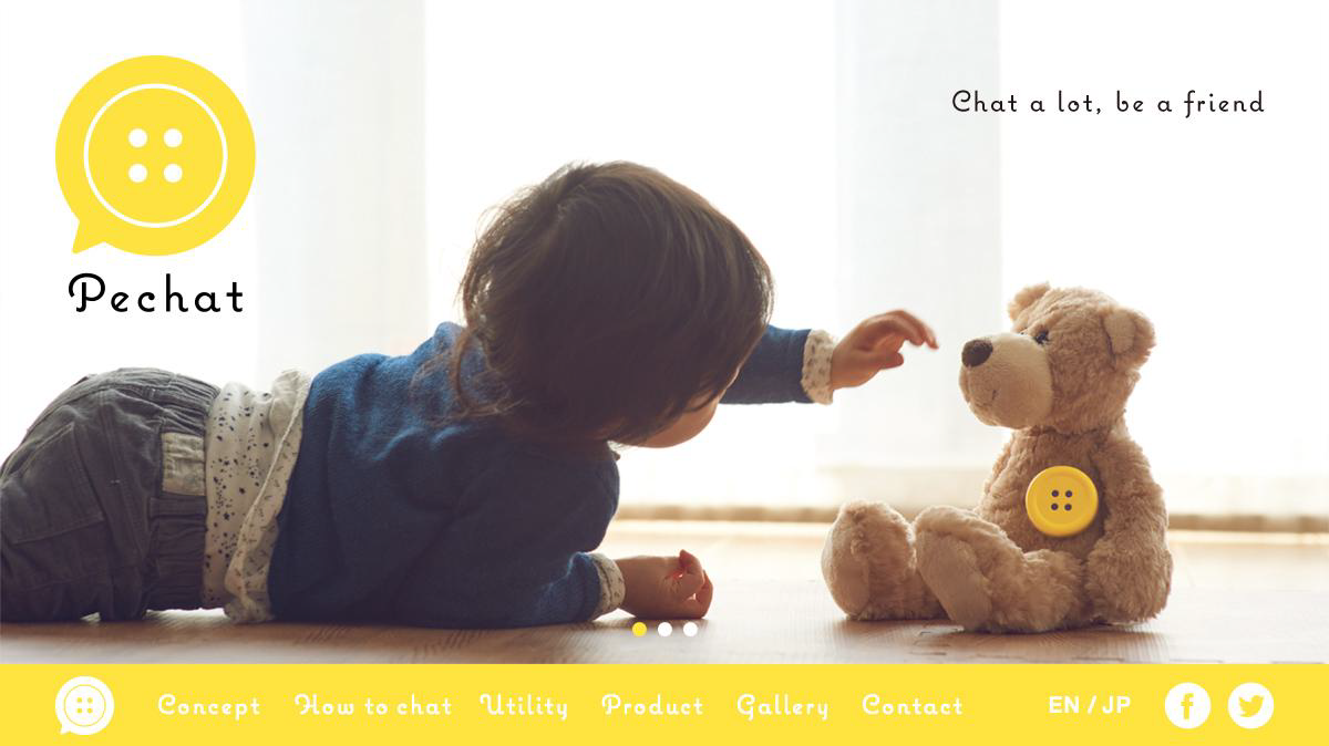 Pechat是由monom和博报堂DY集团的博报堂i-studio的数字创意实验室“HACKist”共同开发的钮扣型说话音箱。将Pechat装在喜欢的长毛绒玩具上,利用专用的智能手机APP进行操作,就可以赋予长毛绒玩具有种会说话的感觉。通过Pechat,能具有与孩子沟通秘密,一起唱歌,促使睡午觉,讲故事等各种各样的使用方法。Pechat是一款为了亲子而开发的新型沟通工具,和能提升育儿兴趣的次世代玩具。