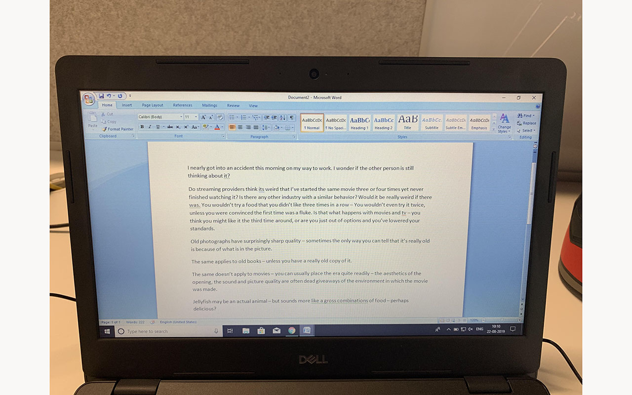 有许多方法可以做到这点,但我会运用一个经过验证的方法:自由写作。在进行任何创意工作之前,我总是会打开一份空文档,戴上耳机,然后开始疯狂地打字。不管想到了什么,不管是相关、无关或毫无意义的,在这个过程中你想到的东西都有出现在页面上的价值。情况往往是,你的有意识思维过程会围绕一个与你手边的项目相关的主题展开,毫无修饰地出现在页面上,但这一情况不会持续太久。