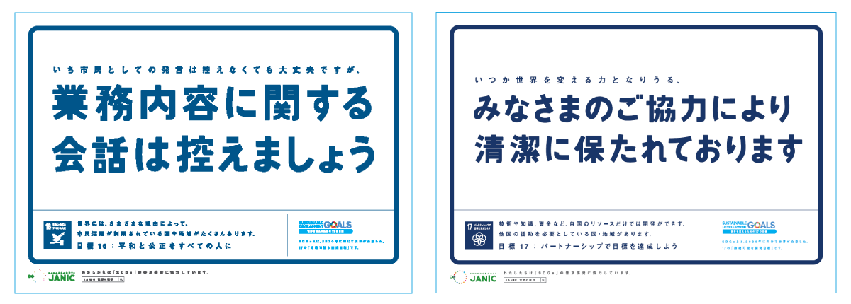 所说的“多余的一句话标语”指的是JANIC(特定非营利活动法人 国际协力NGO中心)和博报堂共同开发的促进理解SDGs(可持续发展目标)的工具,以张贴标语的形式,来提醒人们注意和认识身边的SDGs17个目标和课题。标语的种类分别对应17个目标。自2017年10月开始在JANIC网页免费公开。