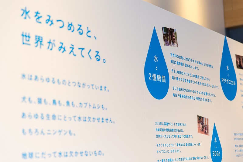 【会场除了设有以“马达加斯加的儿童们面临的水资源问题”及“我们的日常生活与水资源的关系”为题的展览,还再现了在此前的援助中为当地小学实际设置的水井。详情请参见以下链接。https://www.tapproject.jp/news/magazine2017/#part1】