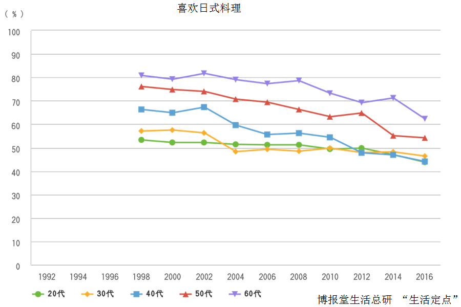 2013年,日本餐被联合国教科文组织登录为无形文化遗产,但是大家的[喜欢]却正朝着不同的方向发展。那么这又是怎么一回事呢,让我们也来看看其他的数据吧。