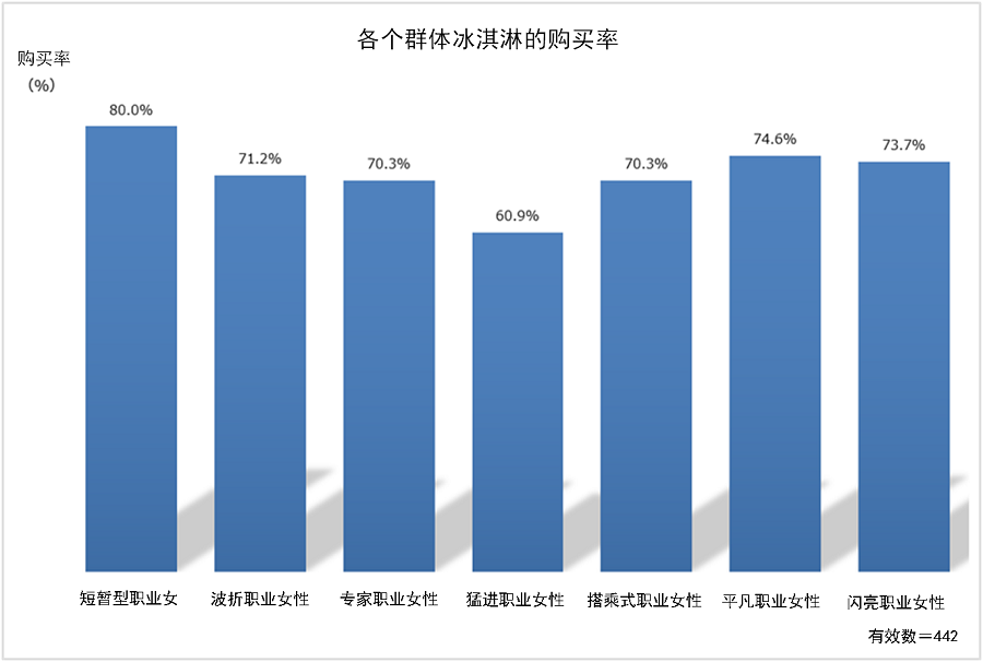 高,但冰淇淋的购买率较低应该是因为工作和人际交往而每日繁忙,因此在家吃零食的频率也较低的缘故吧。