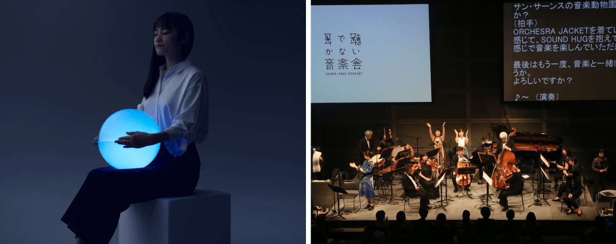 SOUND HUG不是一个助听设备,而是一种享受音乐的新方式。我们希望甚至听力正常的人士也可以借助SOUND HUG以一种全新方式享受音乐。一开始,日本爱乐乐团就热衷于举办一场听力障碍人士和听力正常人士能够共享的音乐会。