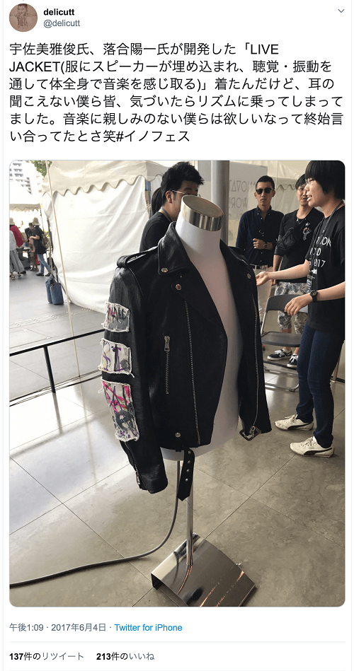 在筑波举办的一次活动中,聋哑人足球运动员中井贤人体验了LIVE JACKET的真正乐趣,并说道:“我们所有聋哑人都觉得自己跟上了节拍。我们虽然不熟悉音乐,但从头到尾,我们都在告诉彼此我们真的非常需要它。”
