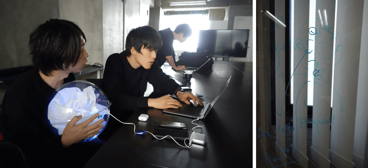 在开发SOUND HUG的过程中,落合阳一特别强调,要设计一款能够让听力障碍人士真正感受到音乐的设备。所以在进行设备改进时,我们邀请了那则推文的发出者中井贤人和一些有听力障碍的学生多次参与到设备开发中,最终设计出SOUND HUG,它能够捕捉到轻微振动的变化,传递音乐节奏和旋律。