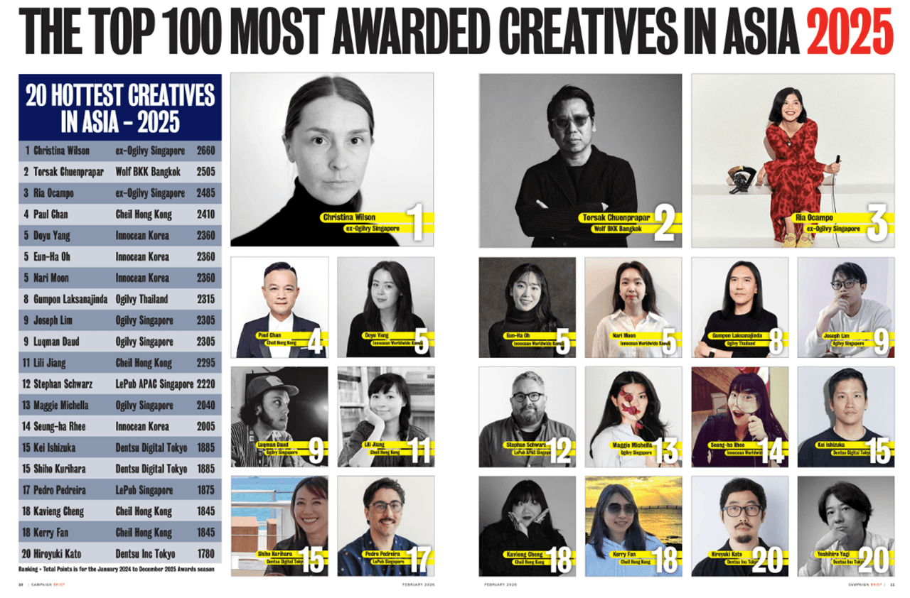 The Top 100 Most Awarded Creatives in Asia – 2025 – Campaign Brief Asia