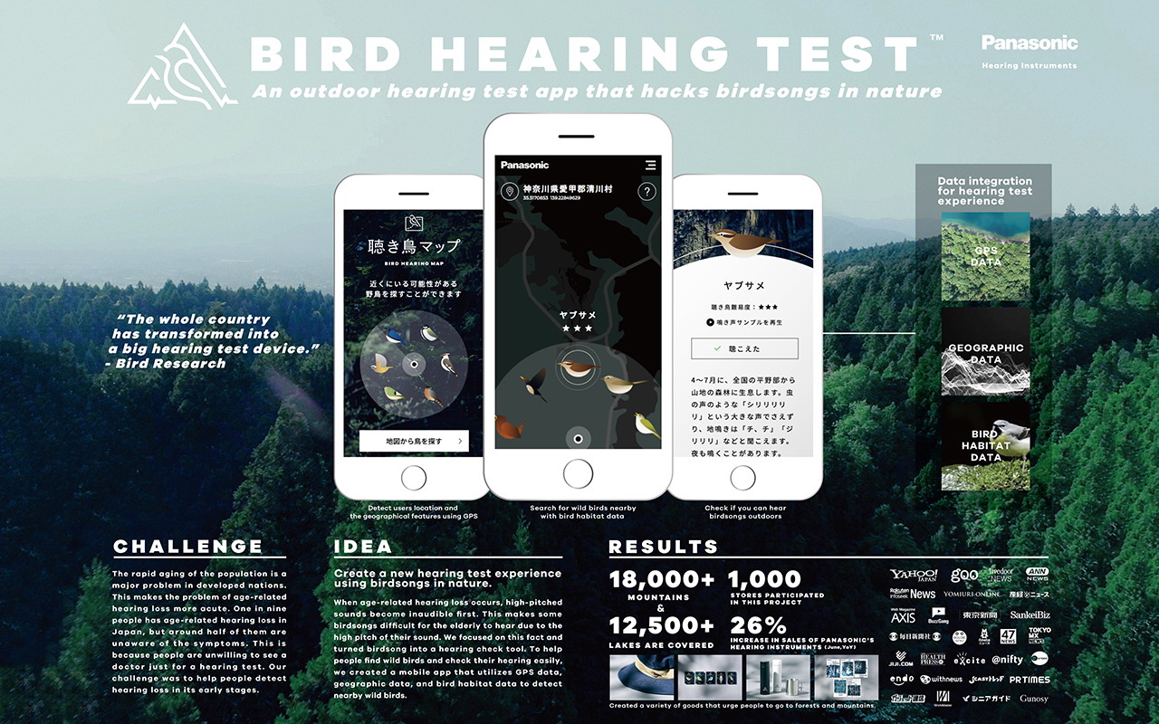 松下约有1000家商店参与了此项目。这款移动应用的范围覆盖了18,000多座山岭和12,500多片湖泊,提供了大量的听力测试点。而与去年同期相比,松下助听器的销售额增长了26%。