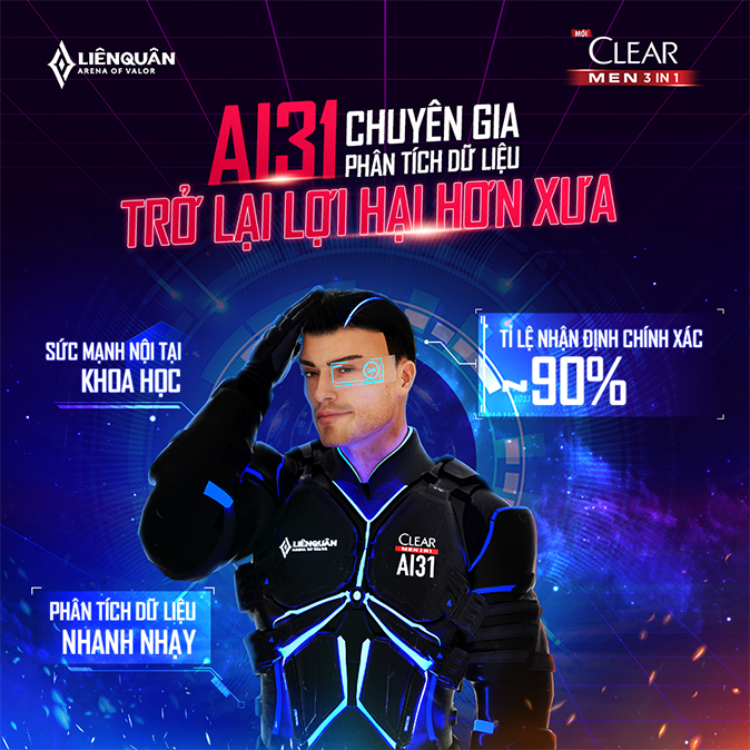 对清扬男士而言,最为关键的任务就是要展示自己对于玩家想法和行为的深入了解。为了实现这一点,我们在推广工作中开展了一系列的品牌活动,包括推出别出心裁的宣传活动,提供玩家想要的实体及游戏内奖励,让玩家可以解锁和使用游戏内的品牌回城特效,并推出了越南的首个游戏分析AI——AI31。