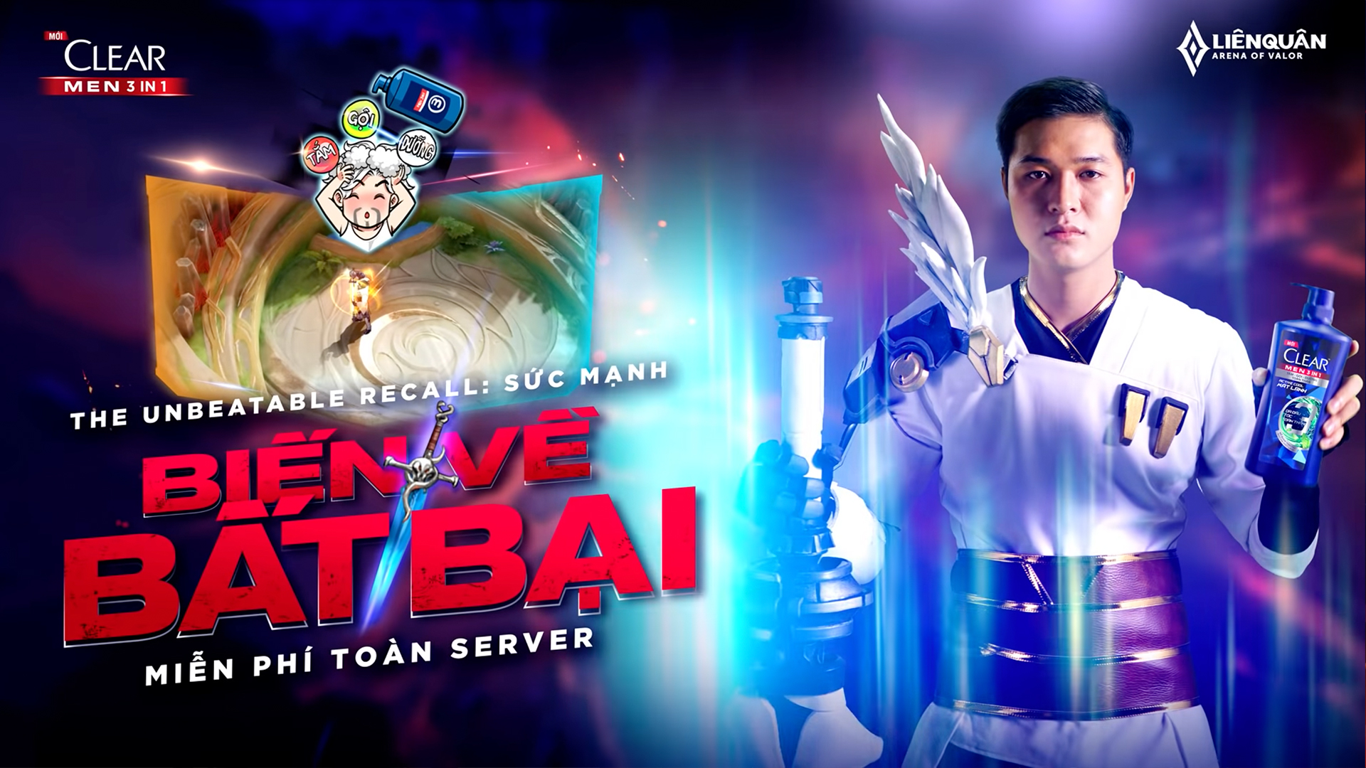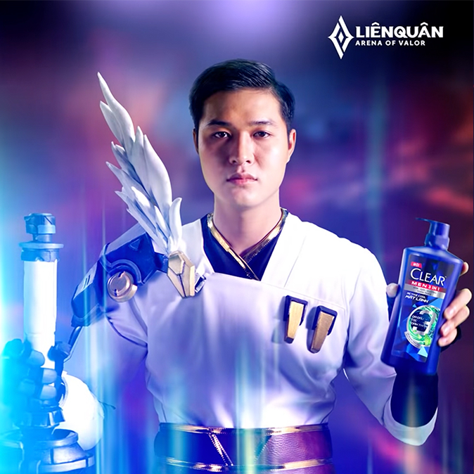 这次推广的宣传语是“3 CHIÊU BẤT BẠI, BẢN LĨNH LEO RANK”(三大强势技能,助您排位上分),它使用了VOA游戏中的说法来表示清扬男士3合1的特点。