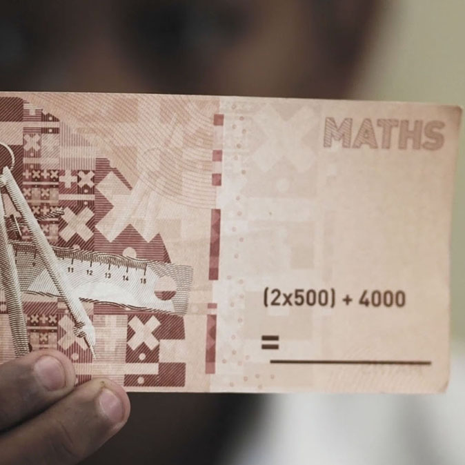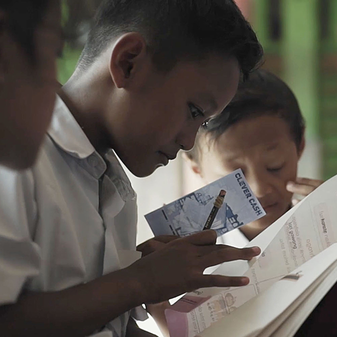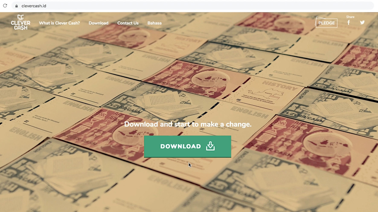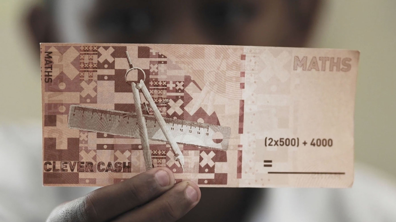 Clever Cash是一个社会项目,旨在解决儿童的温饱问题,同时为他们提供教育。我们和学校教师及志愿者一起合作,走访了贫民区中的穷苦家长,为愿意继续接受教育的家庭发放了Clever Cash纸币。每张Clever Cash纸币都印有教科书上的问题。在教材或教师的帮助下,儿童可以轻松解出这些问题。Clever Cash纸币在填写答案后就能在学校食堂购买食物,就和真实货币一样,但这个过程更有趣,也更具教育意义。
