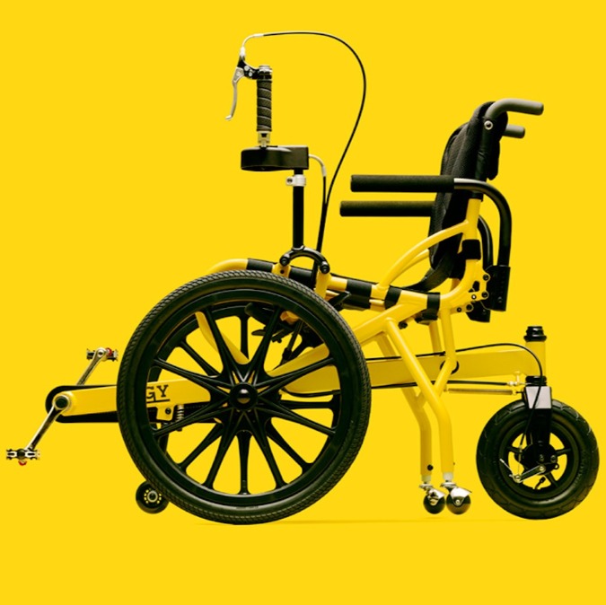 对于许多患者来说,带轮椅的生活意味着一种放弃再次行走可能性的生活。事实上,日本诊所和医院的康复工作都认为患者在住院期间会一直坐在轮椅上。而且,“完全康复”仅限于可以在轮椅上没有任何限制地再次进行日常生活的情况。如果轮椅真的能提供一个可以帮助人们再次迈开双腿的机会时,又会是怎样一种情景呢?这就是踏板式轮椅“COGY”诞生的理由。