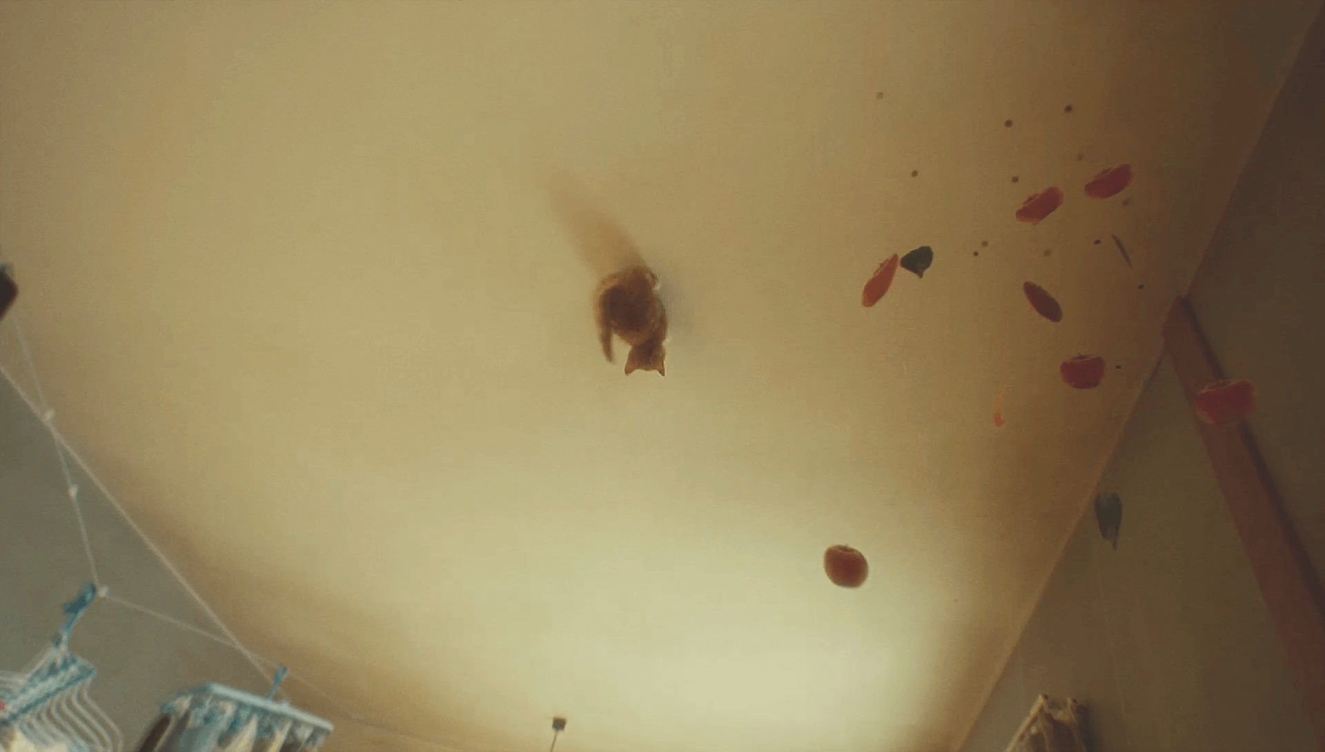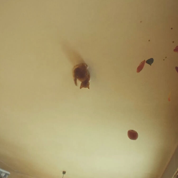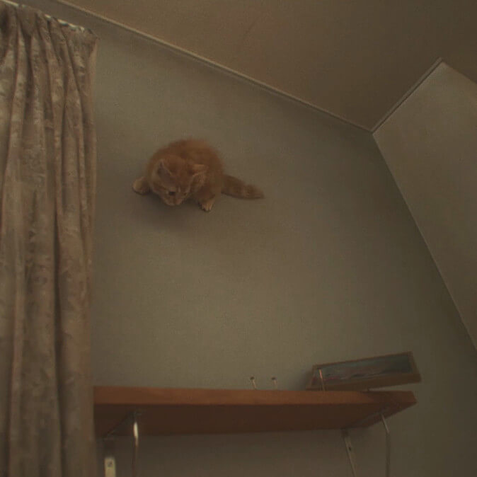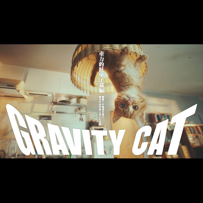 这是一部为宣传《重力眩晕2》而拍摄的真人短片,该游戏是一款以重力为主题的动作冒险游戏,重力在游戏中实现了360°的转变。为了展现重力变化的乐趣,短片呈现了一个女孩和她的猫自由奔跑在墙壁及天花板上,而后掉入了真实世界的天空中的故事情节。由于猫在游戏中是主角的好朋友,而且与猫相关的视频在网络上也深受欢迎,因此我们选择了猫来为短片助威。我们成功处理了具有挑战性的视觉呈现,让观众因其真实性而感到好奇且不可思议。一个大学生在论文苦海中挣扎并最终摆脱固有思维的故事让短片不仅是广告噱头,同时也传达了游戏“冲出思维牢笼、颠覆认知”的主旨。