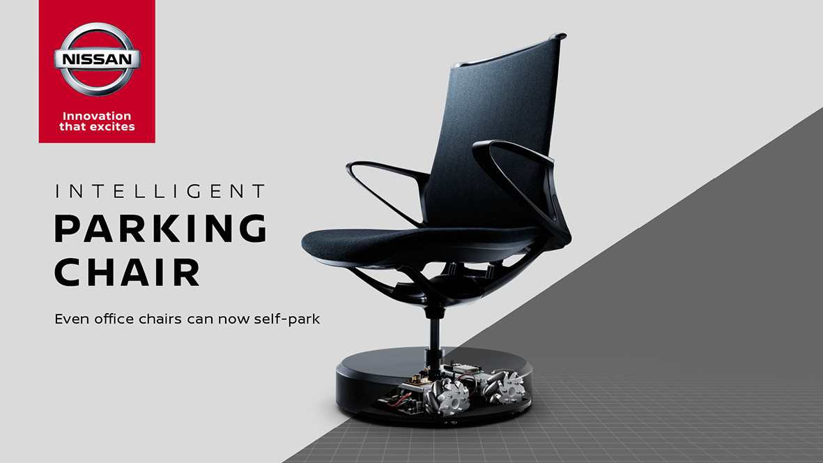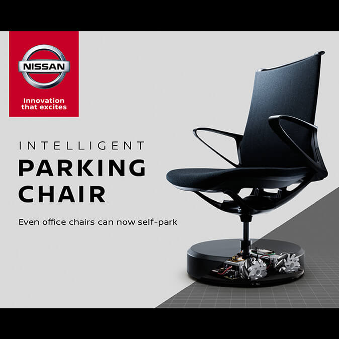 日产公司发布“自驻办公椅”,其灵感来源于日产的智能停车辅助技术——驾驶员可以利用自动驾驶轻松停车。该“自驻办公椅”是一款可以自动归位的办公椅,便于随时保持办公环境整洁。其配备有360度电动滚轮系统并利用4个位于天花板的摄像头所形成的“鸟瞰视角”无线传输椅子位置并将其导向目的地。日产公司跳出了汽车热爱者的局限,通过演示简单的日常物品——椅子,将智能停车辅助技术推广给每位普通司机。