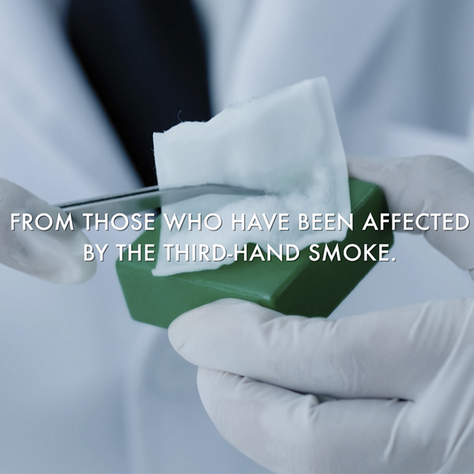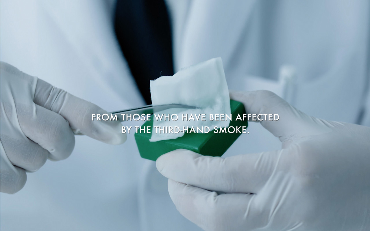 “看不见的香烟”是我们的一项实验成果。我们从受三手烟影响的家庭中收集了一些物件,进行了实验,并提取了其中无法被普通清洁方式清除干净的化学残留物,尤其是尼古丁,并用它们制作出了另一种“香烟”。通过实验结果的展览,我们希望能有更多人了解三手烟的危害。