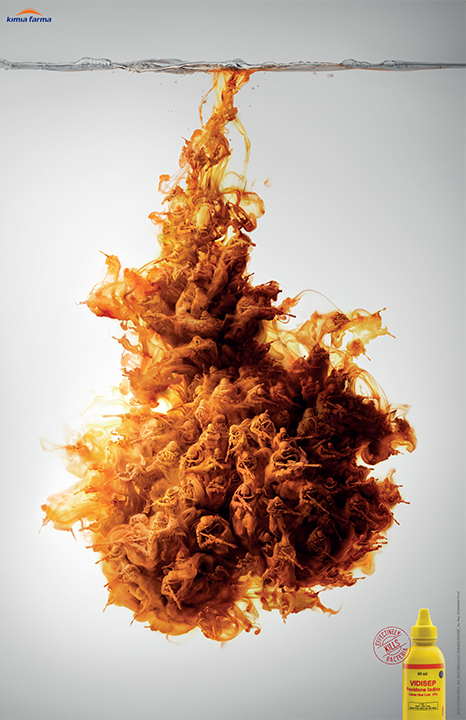 为了动态展示Vidisep产品(一种可杀灭伤口细菌的碘液)的优势,我们使用3D插图将该液体变成海豹突击队。这一引人注目的视觉体验可在传达产品效能的同时,有效吸引报纸读者的注意力。