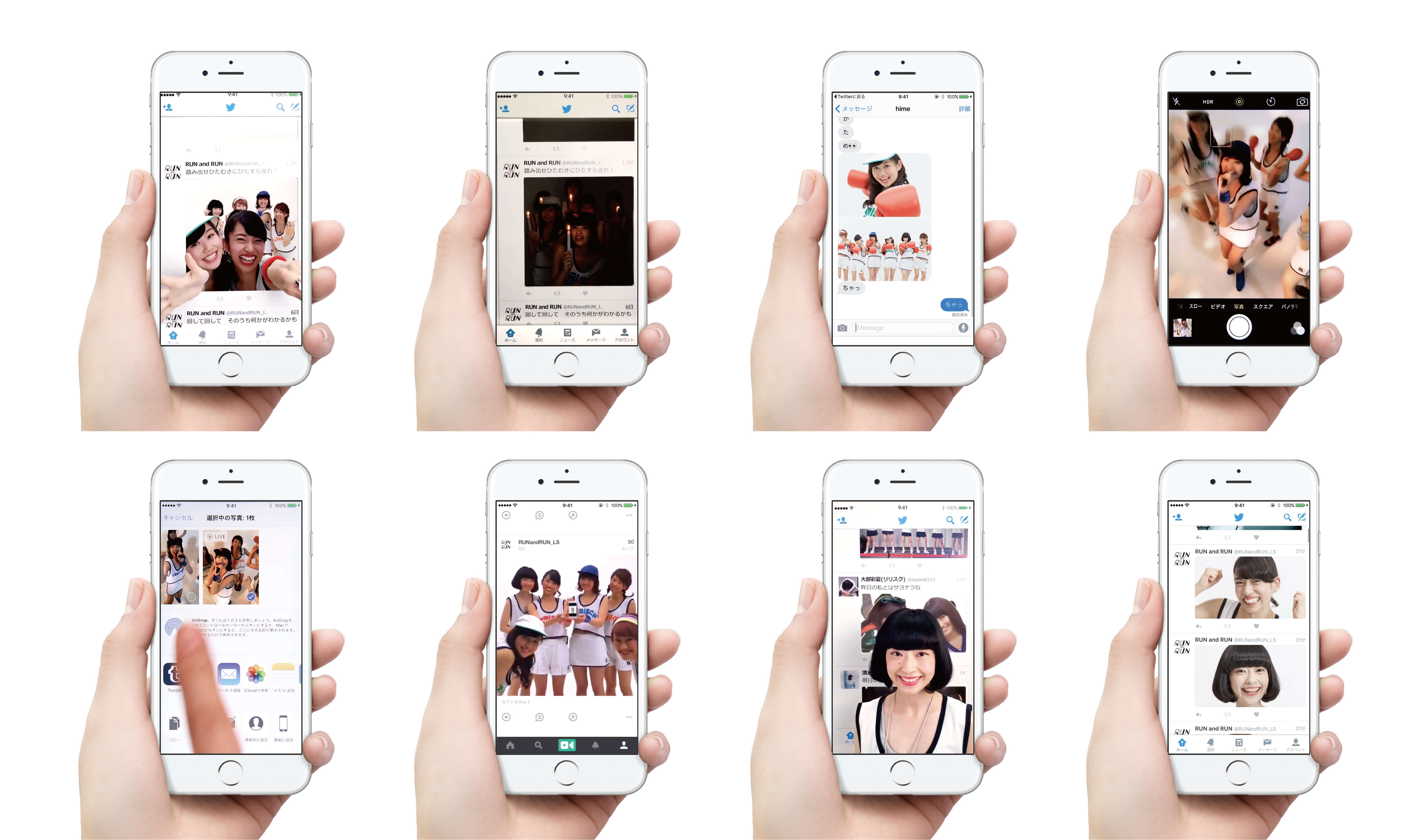 日本新兴偶像团体Lyrical School发表了其出道主打歌“Run and Run”的MV。最新的趋势显示,日本青少年普遍喜欢在手机上观看视频,但却不喜欢横屏,所以该MV采用竖屏视角且多用手机拍摄而成,旨在塑造熟悉感。通过颇具创意的剪辑,这部充满想象力的视频让观看者产生流行偶像团体侵入他们手机的错觉——六名Lyrical School成员从观看者的手机app上跑过。