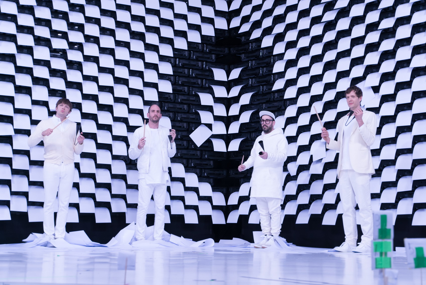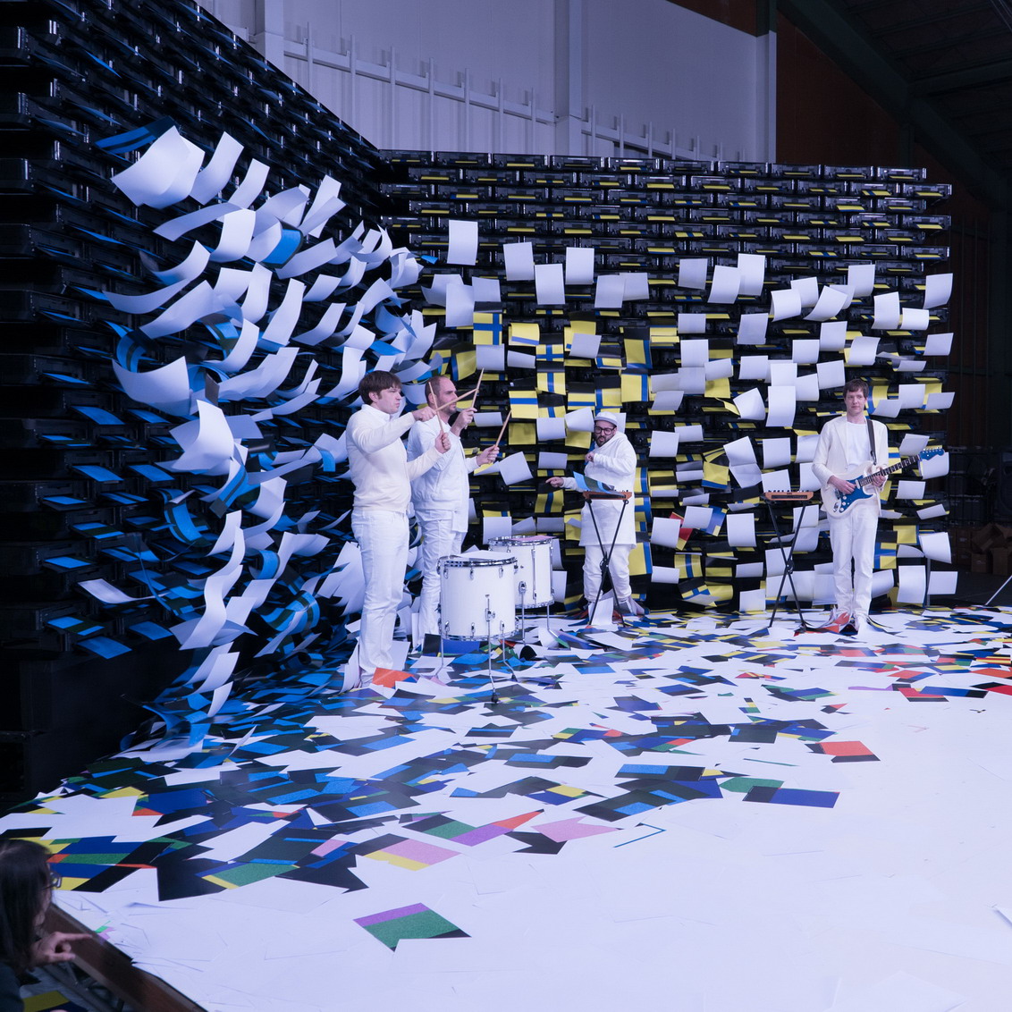 首先,我们开发了一套先进的系统,通过它印刷纸制作音乐视频。乐队在前台表演的时候,在后台可从567台打印机同时打印出来。乐队的动作和打印输出需要同步,以便通过相机顺利讲述故事。在幕后,视频显示出纸质制图可反映出实时情况,使用的所有纸张都是可回收利用的,而收益则交给绿色和平组织。这是世界上第一张纸质绘图,通过世界级的合作,让所有参与者都会对实现这种创意性的音乐视频现象感到痴迷。