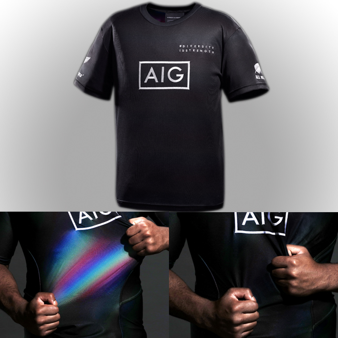 TBWAHAKUHODO开发了“UNITED BLACK FABRIC”,这是一种全新的面料,表面黑色,但拉伸的时候又显示出彩虹色。该面料是由AIG Japan Holdings (AIG Japan)广告公司定制设计、开发和创建,作为其“DIVERSITY IS STRENGTH(多样性就是力量)”活动的象征。该活动带头开展了由美亚日本正在进行的大规模的宣传活动,宣布其反对一切形式的歧视和偏见。
