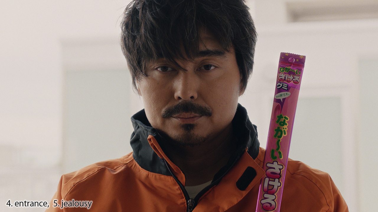视频讲述了一位被手撕“Sakeru Gummy”的样子吸引,从而坠入爱河的女孩与被她告白的恋人的日常故事。然而,当食用更长的Long Sakeru Gummy的“更长男”登场后,剧情便开始向三角恋的方向发展。还是…?