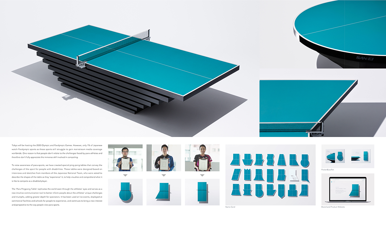 这款残疾人专用乒乓球桌给每一个运动员一个他们眼中看到的全世界。每一张球桌都是根据日本国家队队员的访谈和草图设计的。