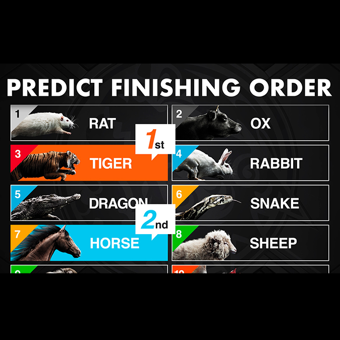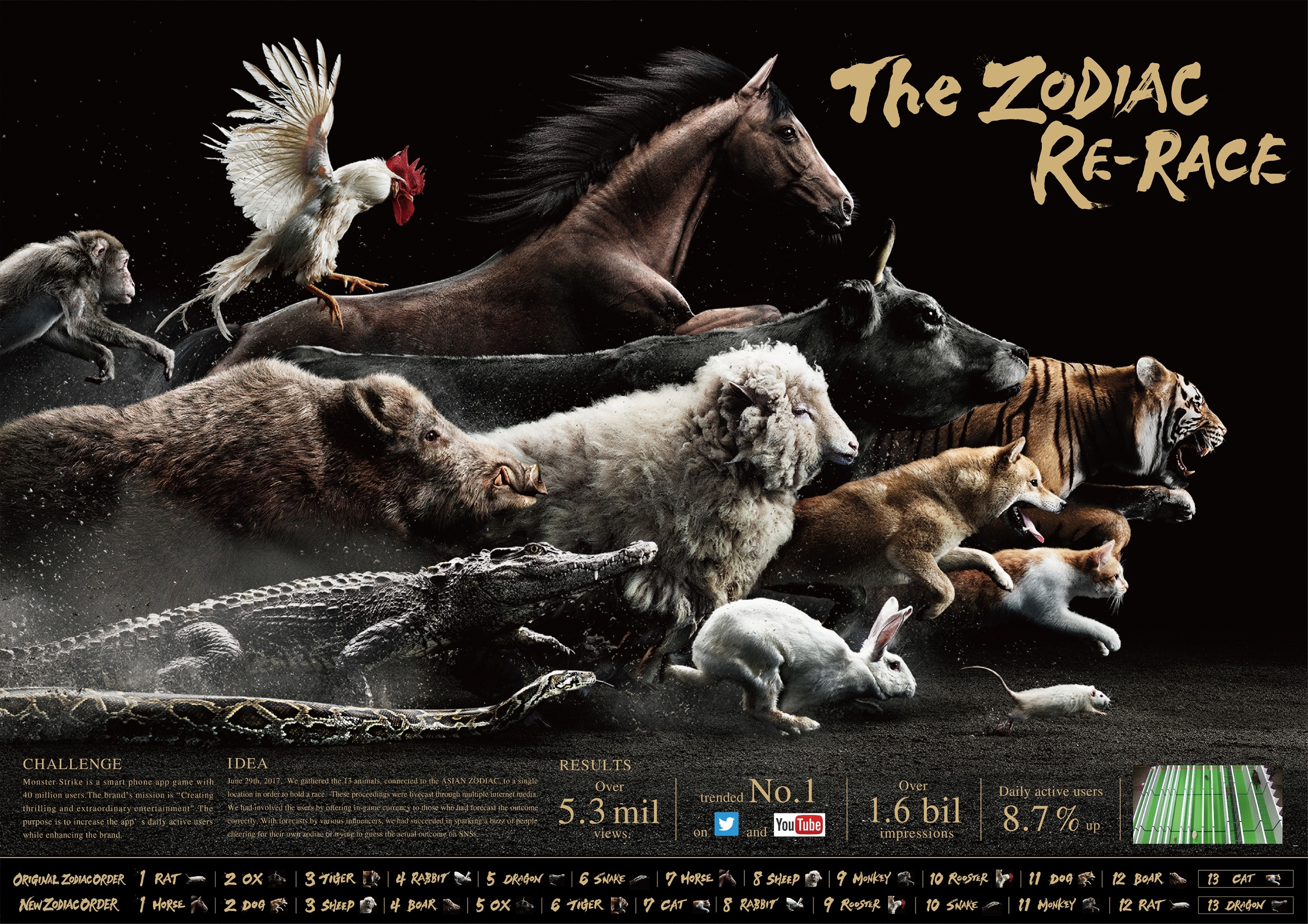2017年6月29日,我们在一个地点召集了与亚洲生肖相关的13只动物进行一场比赛。这些过程通过多种互联网媒体进行直播。我们通过向正确预测结果的人提供游戏币的方式来吸引用户加入。该活动成功地在社交媒体上引起热议,来自各个有影响力的人预测激起人们为自己的生肖角色呐喊助威,或试图猜测赢家。